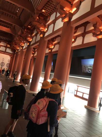 今日は、歴史博物館とピースおおさかに社会見学に行きます。今は、歴史博物館を見学中です。
