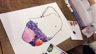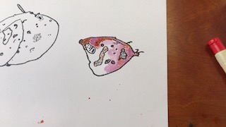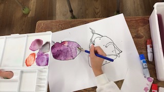 赤、青、茶を使って自分だけのおいもの色を作って塗りました。
