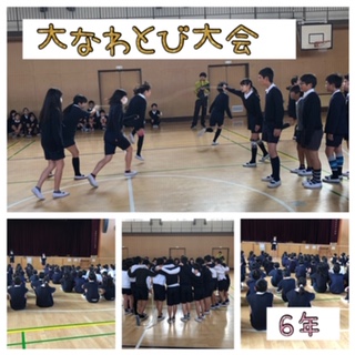 今日は、2学期の学年集会で大なわとび大会を行いました。