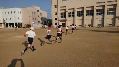 運動量の落ちがちな冬に、体育の授業で、持久走の時間を設け、体力の増強に努めています。