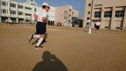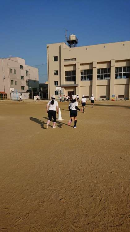 子どもたちは、決められた時間を運動場のトラックを走り、何周走ったかを記録しています。