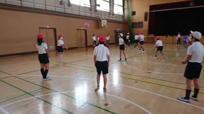 ネット型のボールゲーム。「ソフトバレーボール」です。