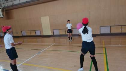 チームの友達と連携を取りながら、ボールを地面に落とさず繋ぐことができるように、練習に取り組んでいます。