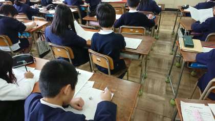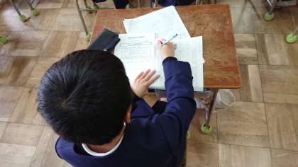 2分の1成人式で家族の人に何を伝えようかと考え、作文をしています。感謝の気持ちや思い出に残っていること、将来の夢などです。