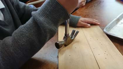 バールをどのように使えば、木に刺さって釘を簡単で楽に抜くことができるのかを実際に体験してみました。