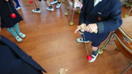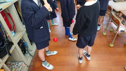 休み時間には、教室でけん玉や楽器を演奏してみんな楽しく過ごしています。