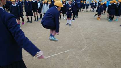 大縄跳びに、じゃんけんや時間制限を設けるなどのルールを増やし、工夫を凝らした集会になりました。