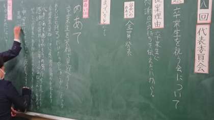 卒業を祝う会において、6年生の人たちに、感謝の気持ちを伝えるためにどんな会にすべきかを、代表委員が集まり、話し合いをしました。みんなより良いものにするために、活発な意見交換をしていました。