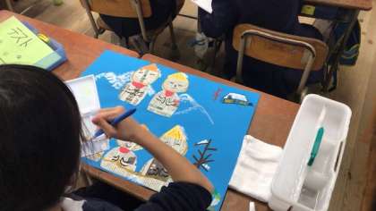 風の吹く向きや場面の様子を思い浮かべながら、進めていきました。