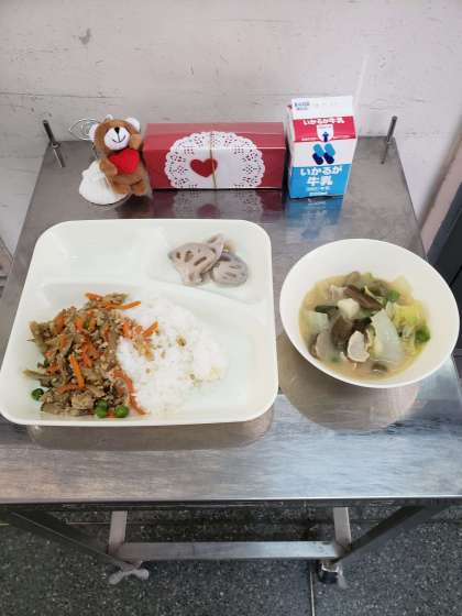 鶏ごぼうご飯、干しずいきのみそ汁、焼きれんこん