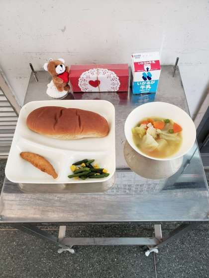 わかさぎフライ、スープ煮、三度豆とコーンの甘酢あえ