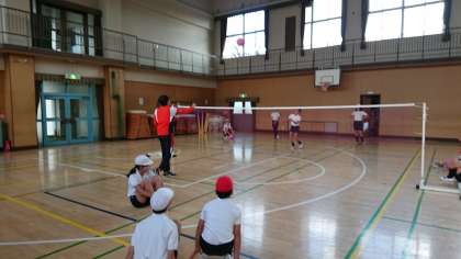ネットを使ってのゲーム形式のソフトバレーボール。