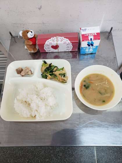 鶏肉のゆず塩焼き、みそ汁、こまつなの煮びたし
