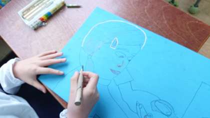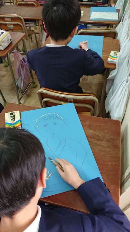 初めての彫刻刀。みんなドキドキ、ワクワクです。正しい持ち方や彫り方で、丁寧に作品を作っていました。完成がどの子も楽しみです。