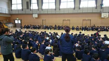 クイズの後には、3月1日に行われる卒業を祝う会に向けて、在校生のみんなで合同での練習をしました。