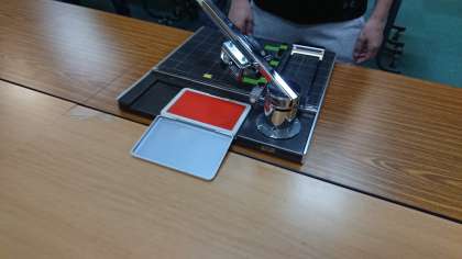 卒業生へ手渡す証書に、学校印を先生たちみんなで協力して押して準備をしました。