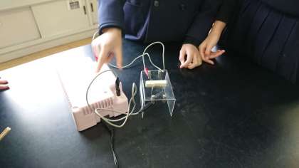 電熱線に発泡スチロールがとけて、切れていく様子に驚きながらも、太い線の方がよく発熱するということを調べることができました。