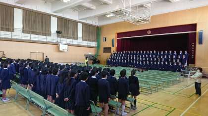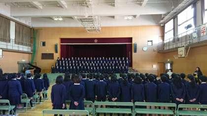 卒業式へ向けて、5年生と6年生が合同で練習をしています。みんな真剣な眼差しで取り組む姿は、とても立派です。