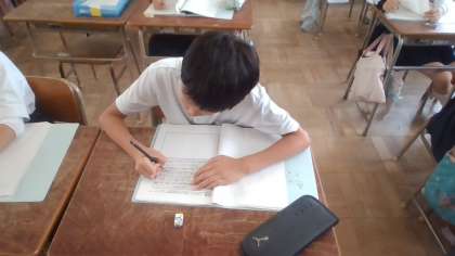 書いている中身の要約や、自分なりのアイデアを出す、イメージを広げて導き出す、など昨今必要とされている学力を高める学習です。苦戦しながらも、大切なポイントを要約することができていますね!