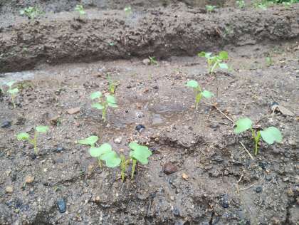 来校頂き、なにわの伝統野菜、田辺大根の種を植えました。