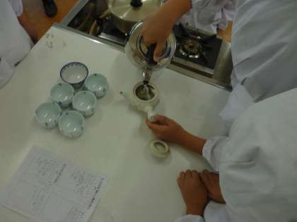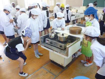 5年生では、お湯を沸かし、お茶を入れる学習をしています。