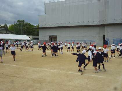3年生は、団体競技の「台風の目」の練習をした後、ダンスの最終調整をしました。
