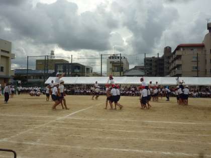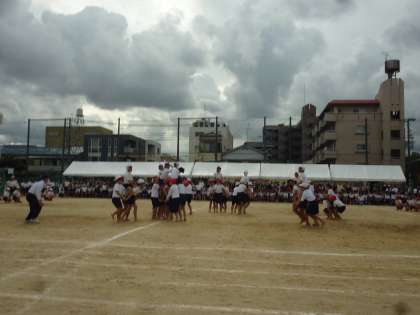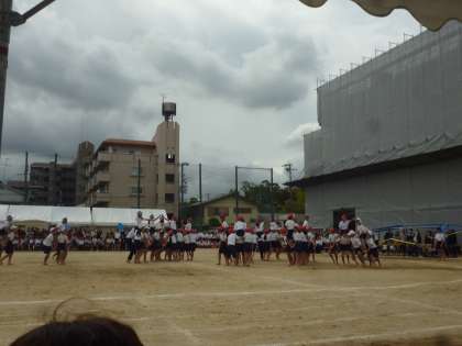 5年生の団体競技「Space Battle 〜U.F.O大合戦」の様子です。