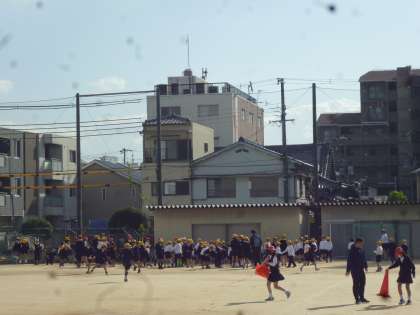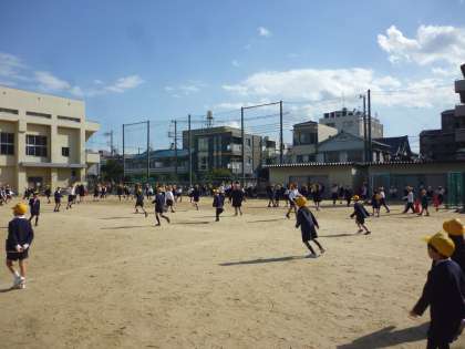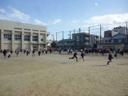 で、運動場でおにごっこ(ケイドロ)をしました。