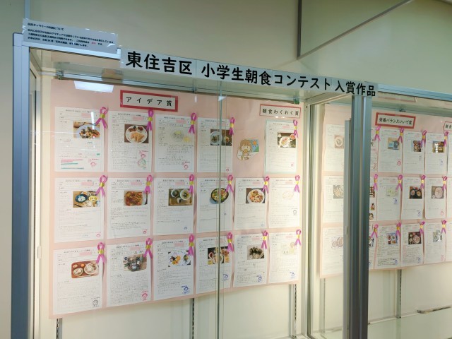 東住吉区朝食コンテストで選ばれた作品が、現在、東住吉区内に展示されています。