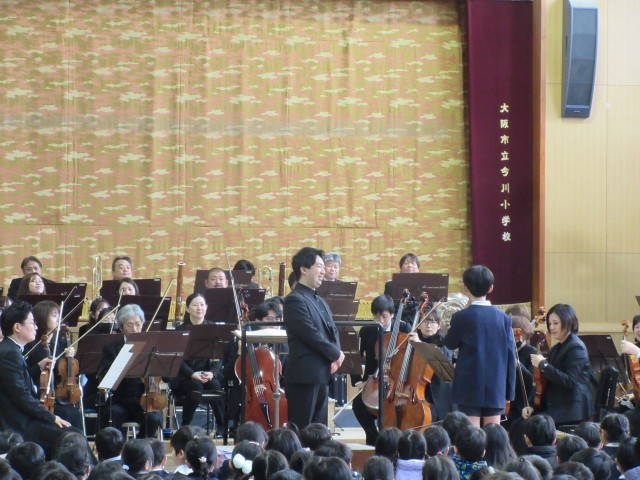 代表者による指揮者体験やオーケストラと高学年のリコーダーとの合奏、オーケストラの皆さんに演奏していただき今川小学校の校歌を歌う活動など、ここでしか味わえない体験をすることができました。