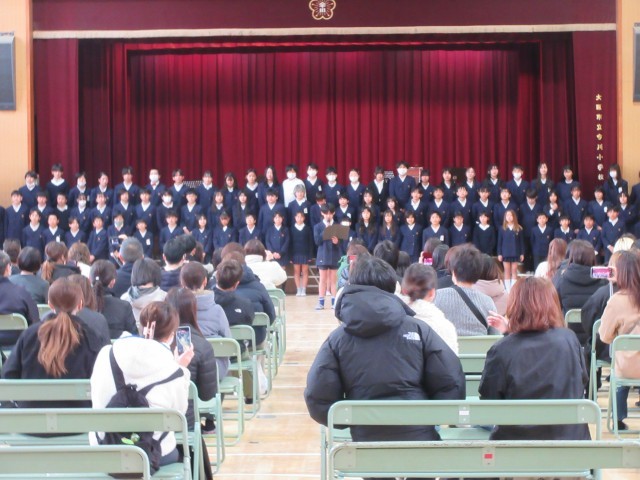 合奏『鬼滅メドレー』や合唱『いのちの歌』、よびかけや詩の群読など6年間の学習のまとめを行いました。