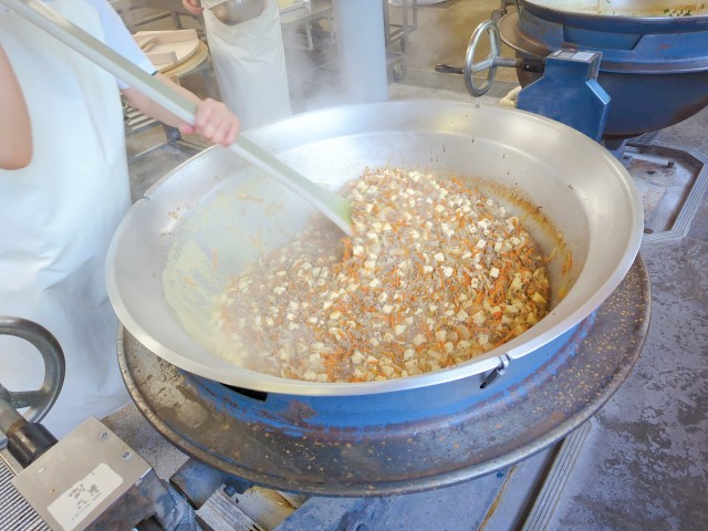 給食では、赤みそやしょうゆなどで味付けし、トウバンジャンで辛みを付けています。