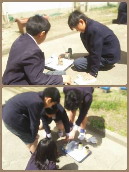 6年生は理科で、ものの燃え方と空気の関係を調べるために、穴をあけた空き缶を使って実験をしました。穴があいている場所で、燃え方にどんな違いがあるか調べました。変化に気付くことができたでしょうか。