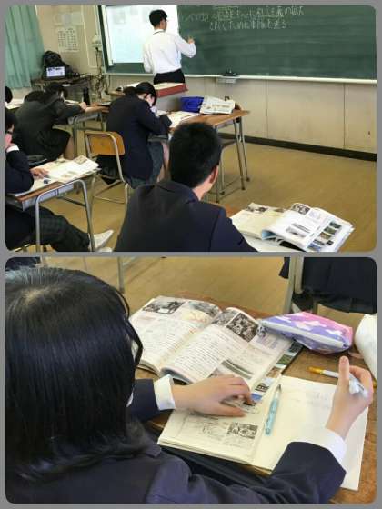 7年生は、漢字の成り立ちについて学びました。8年1組は、小腸の栄養分の吸収について、8年2組は、日本の川と平野について学びました。9年生は、キーワードに着目してロシア革命やシベリア出兵などについて深めていきました。