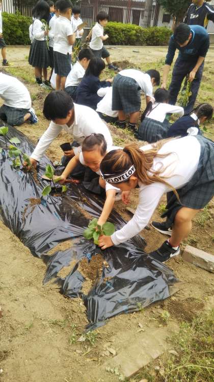 先日、トマト・なすび・サツマイモをみんなで植えました。