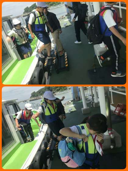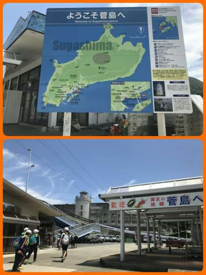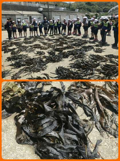 あっという間に菅島に着きました。まず、「アラメ」という海藻を見学しました。葉にしわしわがあるのが特徴です。わたしたちも食べることができますが、さざえとあわびが食べるそうですよ。