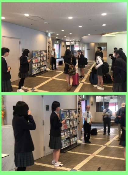ほぼ、予定通りにホテルに到着し、入館式を行います。従業員の皆さま、お世話になります。よろしくお願いします。