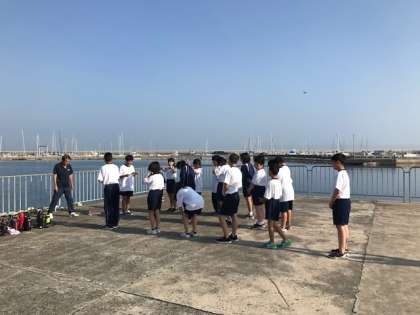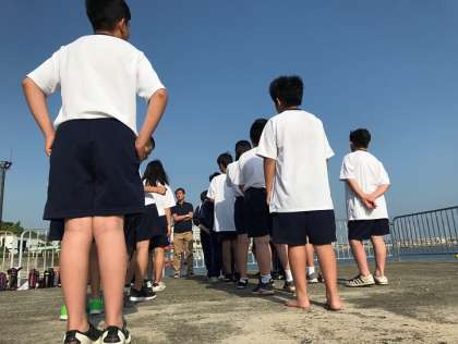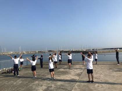 昨夜はみんな、ぐっすりと眠りました。一泊移住2日目の最初の活動は、朝の集いです。眠い目をこすりながら?ラジオ体操をしました。