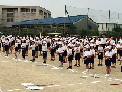 開会式・準備体操・閉会式・入退場の方法などを練習した後は、1〜4年生は教室へ戻りました。ここからは、5〜9年による練習です。係活動の動きも含めて、ひととおりプログラムに沿って行いました。その際に、応援の応援の声も大きく響いていました。9年生を中心として、まとまりを感じる応援の姿でした。本番がとても楽しみです。