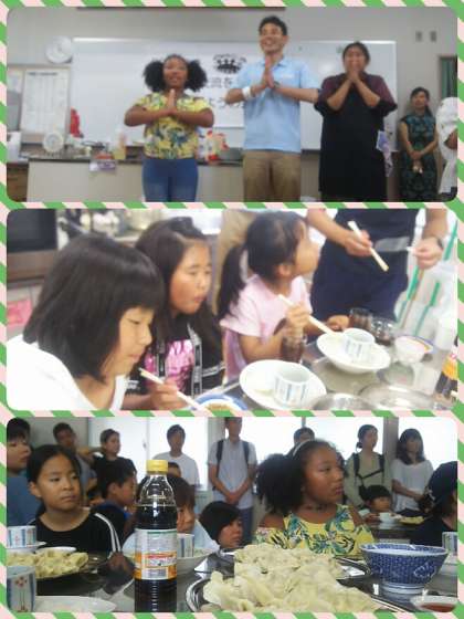 食事のメニューは、ナイジェリアのオクラスープと、中国の餃子です。ピリ辛に驚いていた子もいましたが、おいしくてたくさんおかわりもしていました。