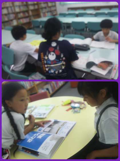 小学生も中学生も、宿題や自主学習、読書で利用していました。計画的に課題に取り組む様子が見られました。涼しい部屋へ、宿題や本を読みにぜひ来てください。