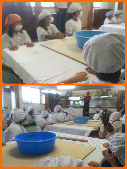 一度洗った手は机のシートにのせ、何もさわらずに説明を受けます。