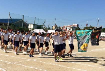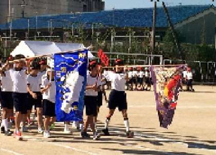 『体育祭入場行進』〜団旗係による力作応援旗を先頭に!!
