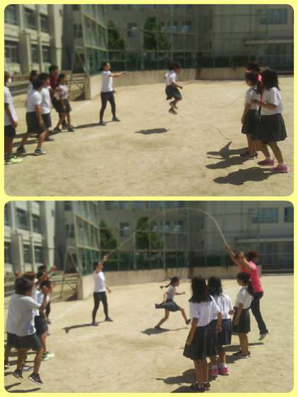 5年生は、休み時間に積極的に大縄とびに挑戦しています。何人連続で続けられるかチャレンジでは、それぞれに大きな声援を送りながらがんばっていました。達成感をもちながら、次の授業にも向かっていました。