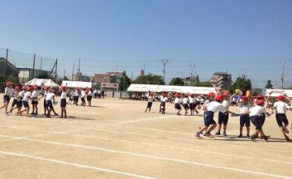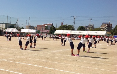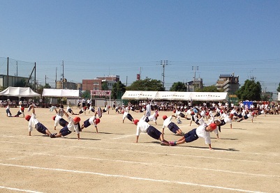 プログラム8番は、3・4年による集団演技『ドッカン花火』です。楽しい音楽に合わせて踊りました。色とりどりのタオルを持って、様々な体型・様々な動きを見せてくれました。なにより、演技をしている子どもたちが、とっても楽しそうにしていました!!