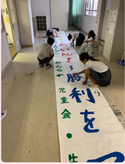 中学校の生徒会が下書きをして、小学校の児童会が色を塗りました。
