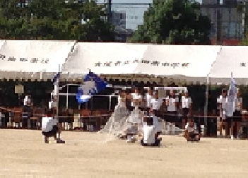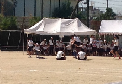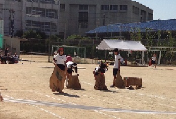 プログラム14番は、7〜9年生による『地球一周』です。網の下をくぐり、ハードルを越え・・・。様々な課題をクリアーしながらゴールをめざします!