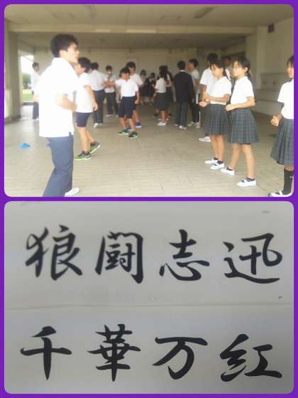 体育祭まで2週間をきりました。応援団は、昼休みも練習を始めています。今年度から赤団「千華万紅」と、白団「狼闘志迅」が、混合で1つの応援団を結成してします。どんな演技を披露してくれるか楽しみです。