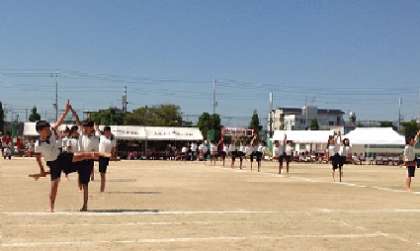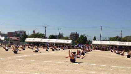 音楽に合わせて進めていきます。まずは、一人技から・・・。続いて二人技へ・・・。全員がそろった姿がとてもきれいです!!