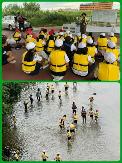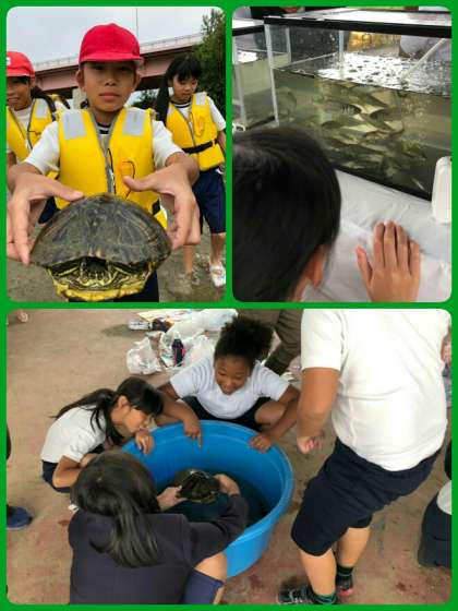 水環境への関心を高めるため、大和川がどんな川で、どんな水生生物が生息しているか調べました。水の透明度も確認し、「におい、ごみ、感触」の測定結果も集計しました。自分たちの身近にある川がきれいになっていることを知り、とてもうれしそうでした。